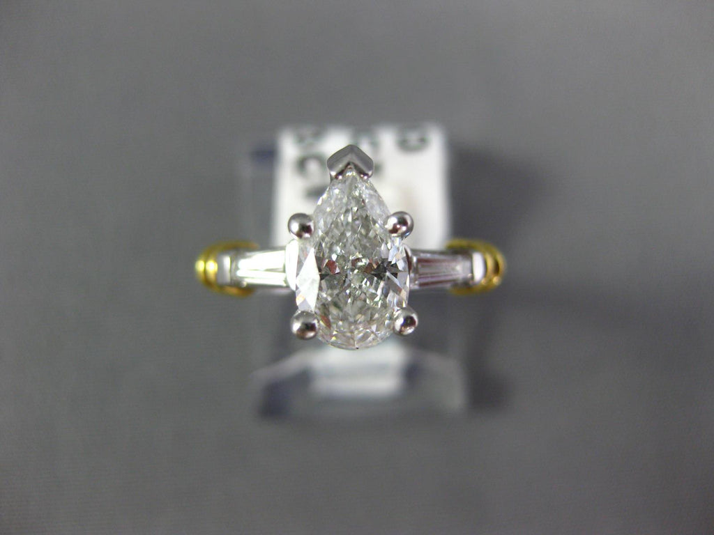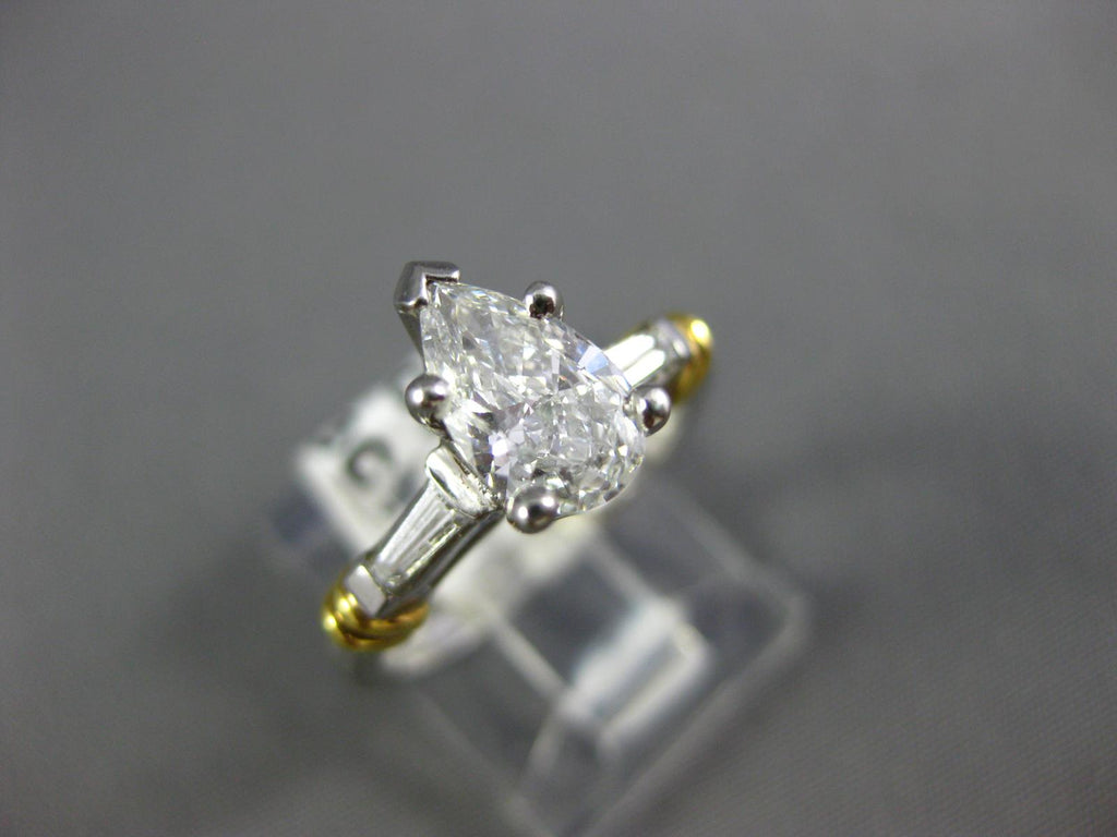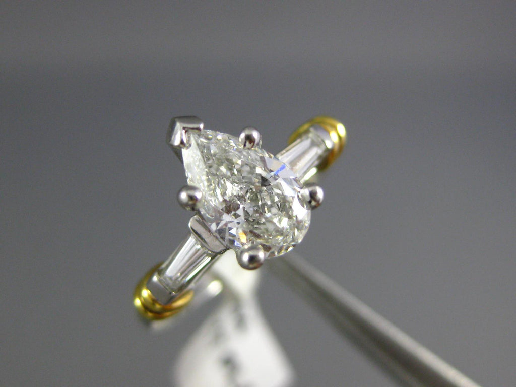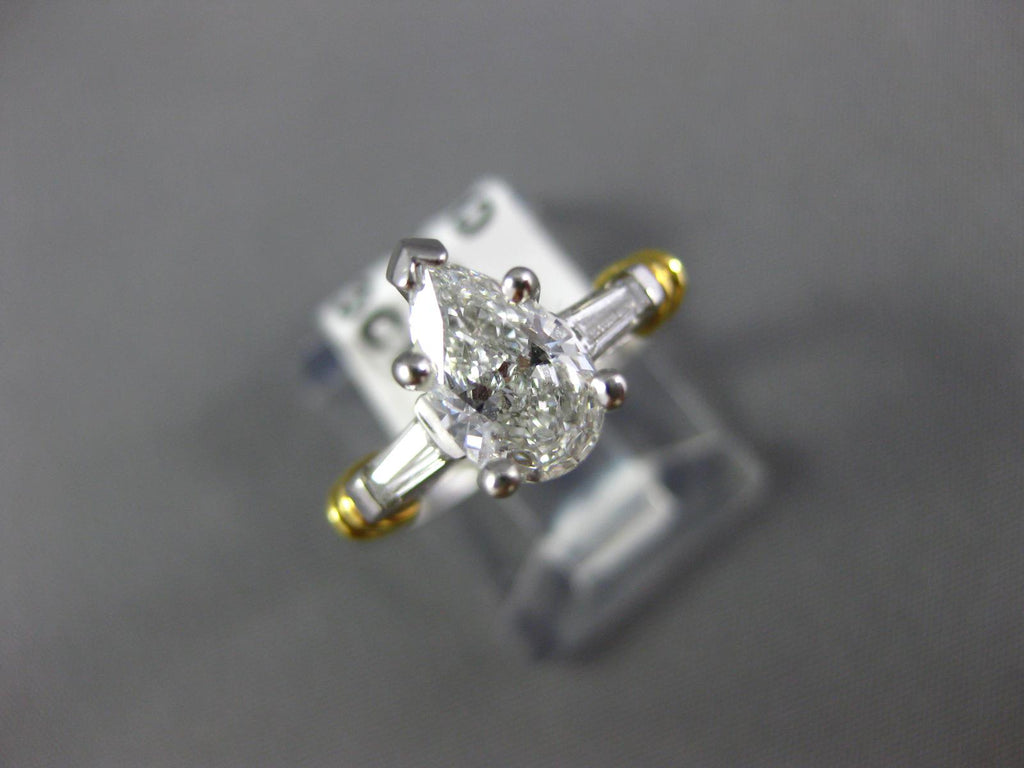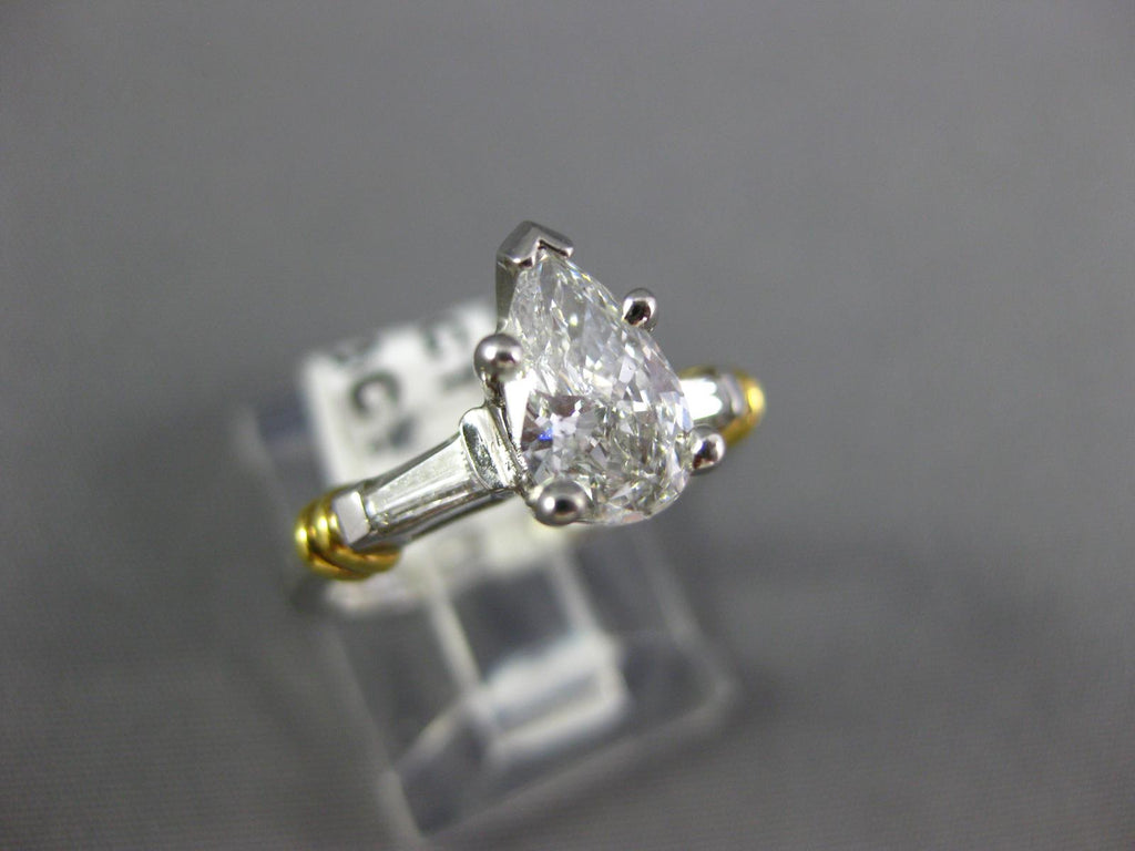 .93CT DIAMOND PLATINUM & 18K GOLD 3D PEAR SHAPE & BAGUETTE ENGAGEMENT RING #1894