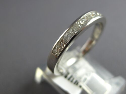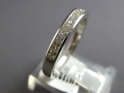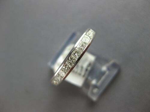 14KT WHITE GOLD WEDDING ANNIVERSARY RING. 3D CLASSIC CHANNEL SEMI ETERNITY DESIGN. PRINCESS CUT DIAMONDS ARE F/G COLOR, VSSI CLARITY .55 CARATS. MEASURES 3mm WIDE. RING SIZE 5.75. CAN BE SIZED BY OUR MASTER JEWELER UPON REQUEST. WRITTEN APPRAISAL AVAILABLE. COMES IN A PRESENTABLE GIFT BOX.