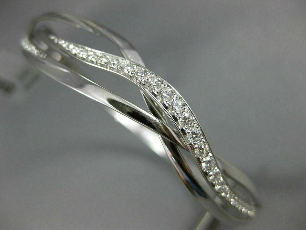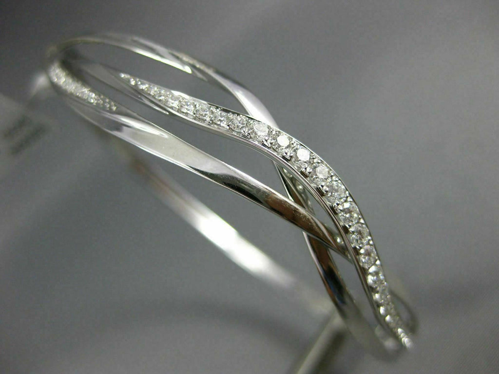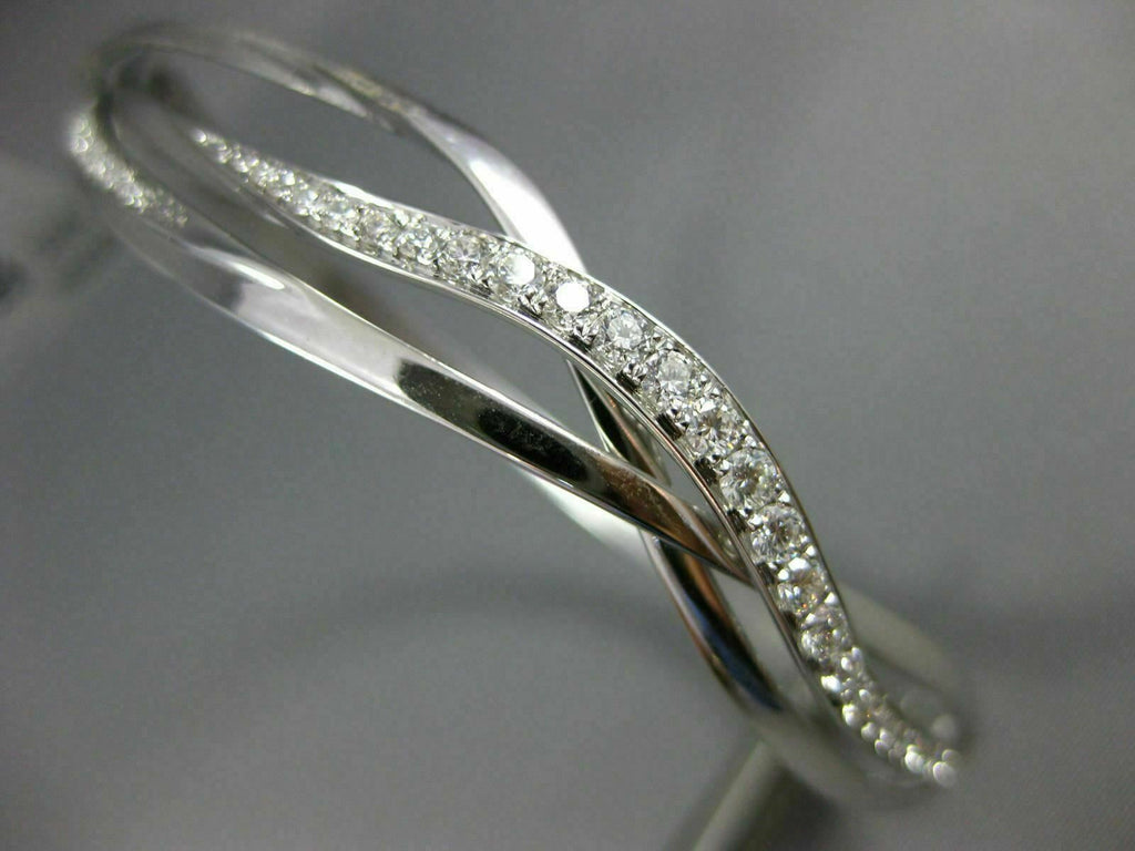 18KT WHITE GOLD BANGLE BRACELET. 3D MULTI ROW CRISS CROSS X LOVE DESIGN. DIAMONDS ARE F/G COLOR, VSSI CLARITY .56 CARATS. MEASURES 10mm X 52mm X 58mm. FITS UP TO 6.50" INCH WRIST. WRITTEN APPRAISAL AVAILABLE. COMES IN A PRESENTABLE GIFT BOX.