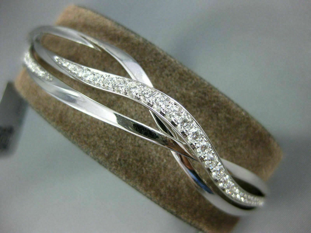 .56CT DIAMOND 18KT WHITE GOLD 3D MULTI ROW CRISS CROSS X LOVE BANGLE BRACELET