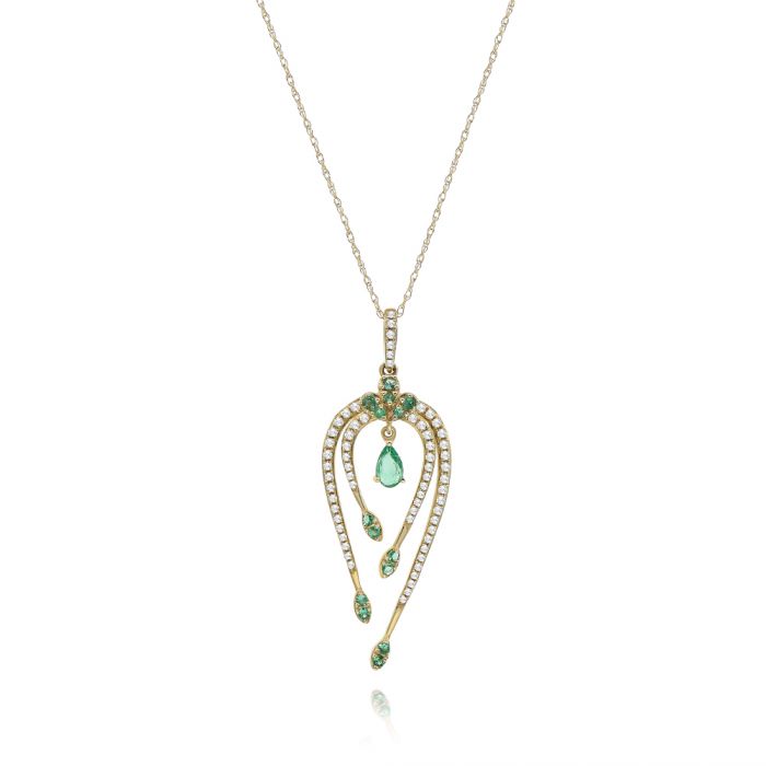 .56CT DIAMOND & AAA EMERALD 14KT YELLOW GOLD MULTI SHAPE TEAR DROP SNAKE PENDANT