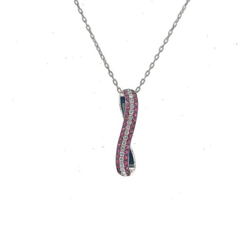 .56CT DIAMOND & AAA RUBY 18KT WHITE GOLD 3D CRISS CROSS X LOVE FLOATING PENDANT