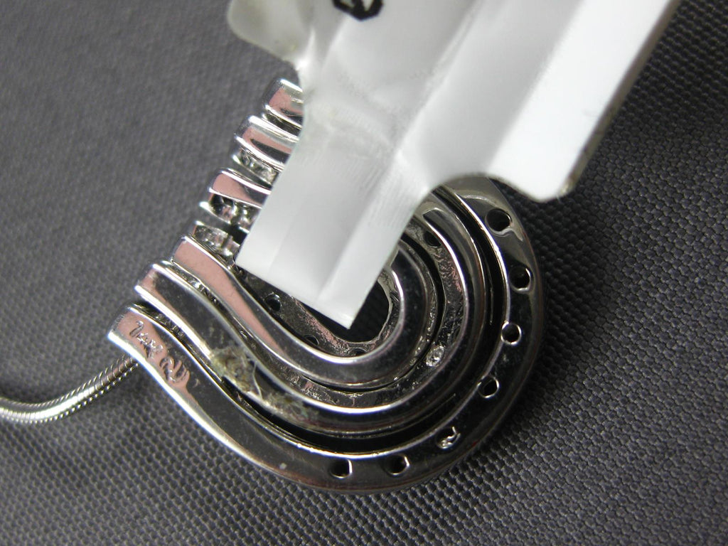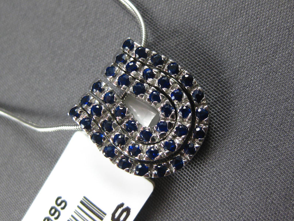 14KT WHITE GOLD FUN FLOATING PENDANT. 3D MULTI ROW HORSESHOE LUCKY DESIGN. AAA SAPPHIRES ARE .58 CARATS. MEASURES 13mm X 13mm. COMES ON A 14KT GOLD DIAMOND CUT 16" INCH CHAIN. WRITTEN APPRAISAL AVAILABLE. COMES IN A PRESENTABLE GIFT BOX.