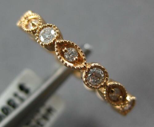 14KT ROSE GOLD ANNIVERSARY RING. 3D ROUND AND MARQUISE SHAPE FILIGREE MILGRAIN ETERNITY DESIGN. ROUND DIAMONDS ARE F/G COLOR, VSSI CLARITY .58 CARATS, MEASURES 3.1mm WIDE. RING SIZE 6.75. CAN BE SIZED BY OUR MASTER JEWELER UPON REQUEST. WRITTEN APPRAISAL AVAILABLE. COMES IN A PRESENTABLE GIFT BOX.