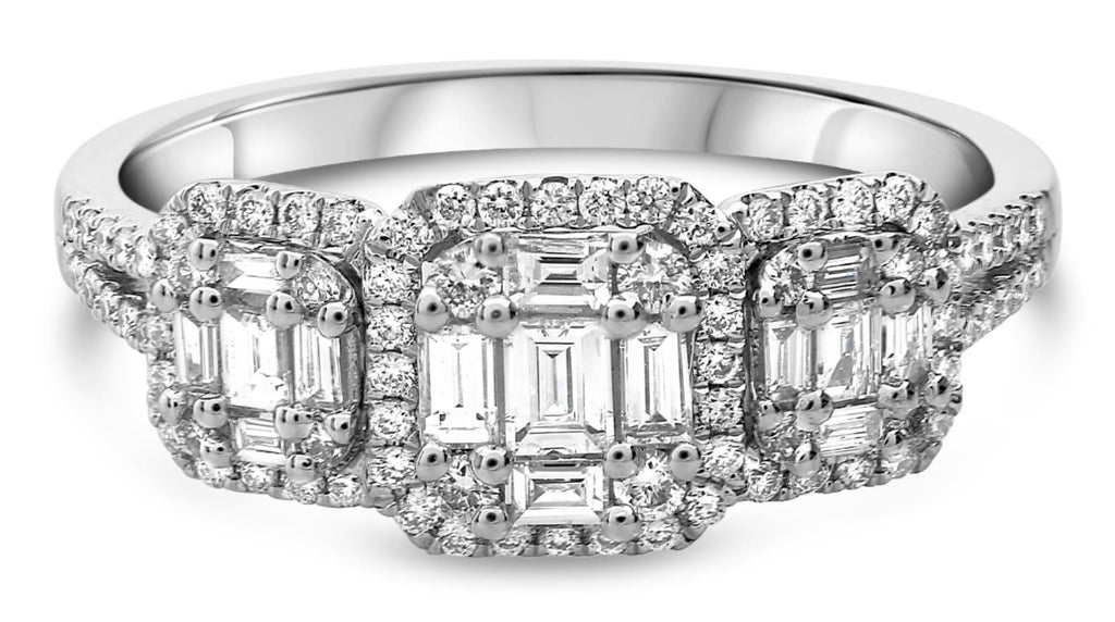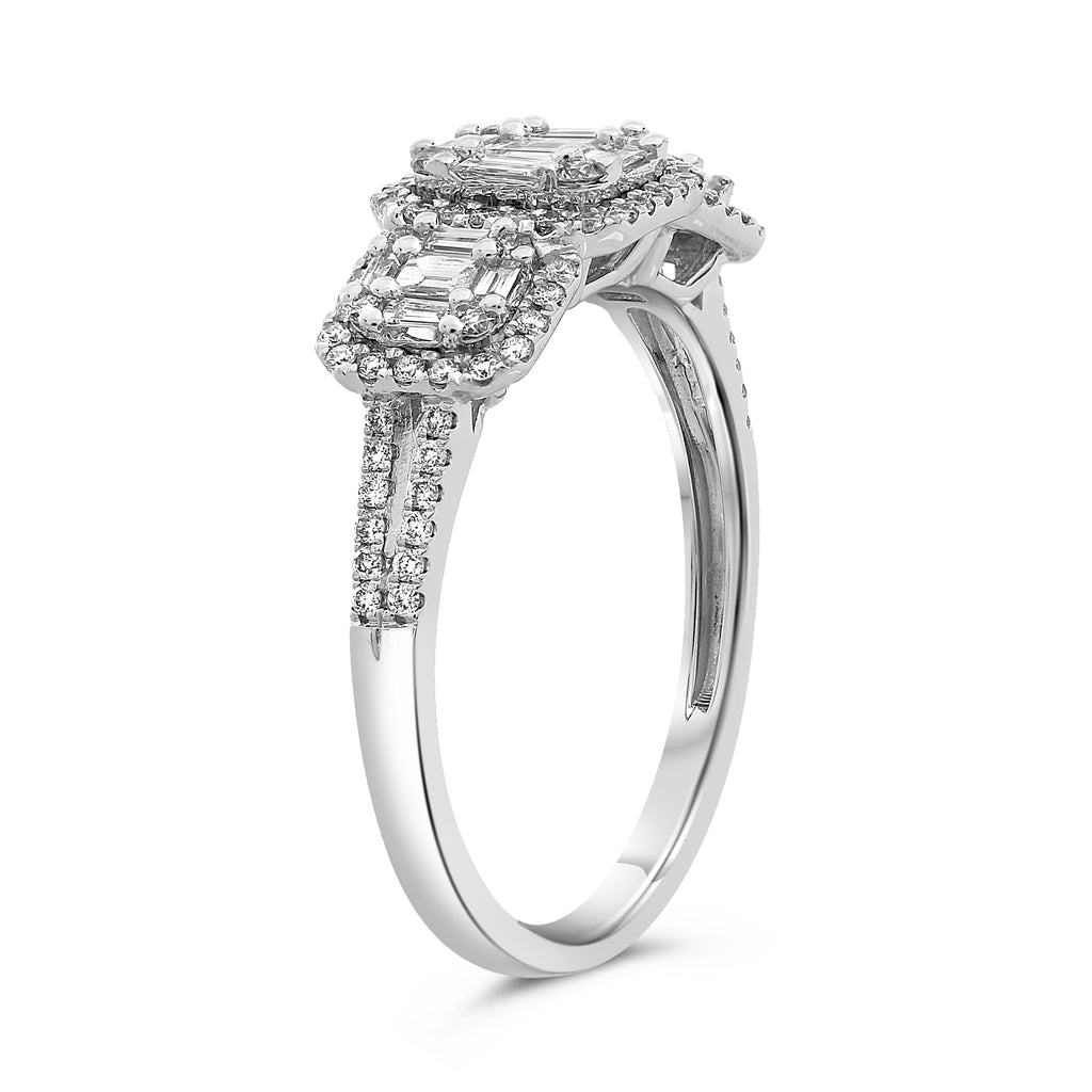 .58CT DIAMOND 14KT WHITE GOLD 3D ROUND & BAGUETTE PAST PRESENT FUTURE LOVE RING