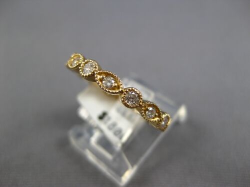 14KT YELLOW GOLD ANNIVERSARY RING. 3D ROUND AND MARQUISE SHAPE FILIGREE MILGRAIN DESIGN. DIAMONDS ARE F/G COLOR, VSSI CLARITY .58 CARATS. MEASURES 1.5mm WIDE. RING SIZE 6.75. CAN BE SIZED BY OUR MASTER JEWELER UPON REQUEST. WRITTEN APPRAISAL AVAILABLE. COMES IN A PRESENTABLE GIFT BOX.