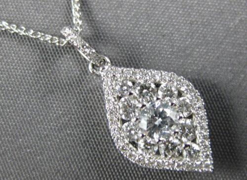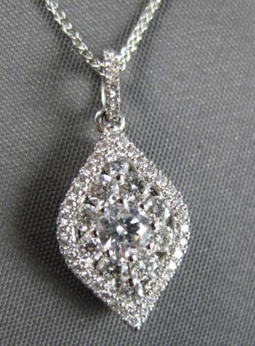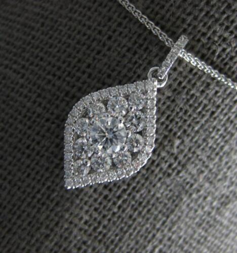 18KT WHITE GOLD FLOATING PENDANT. 3D INVISIBLE TEAR DROP LEAF DESIGN. ROUND DIAMONDS ARE F/G COLOR, VSSI CLARITY .58 CARATS. MEASURES 20mm X 9mm. COMES ON A 14KT GOLD DIAMOND CUT 16-18" INCH CHAIN. WRITTEN APPRAISAL AVAILABLE. COMES IN A PRESENTABLE GIFT BOX.