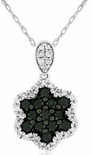 14KT WHITE GOLD FLOATING PENDANT. 3D FLOWER STAR OF DAVID CLUSTER DESIGN. WHITE DIAMONDS ARE F/G COLOR, VSSI CLARITY .15 CARATS. BLACK DIAMONDS ARE .43 CARATS. COMES ON A 14KT GOLD DIAMOND CUT 16" INCH CHAIN. WRITTEN APPRAISAL AVAILABLE. COMES IN A PRESENTABLE GIFT BOX.