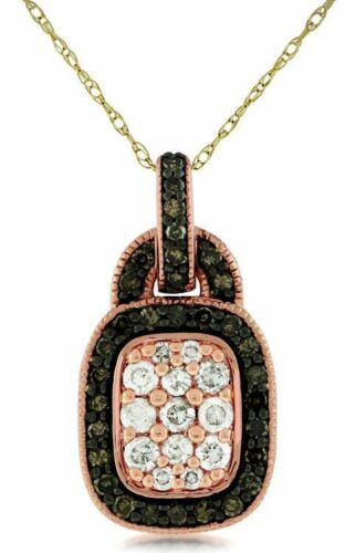 .58CT WHITE & CHOCOLATE FANCY DIAMOND 14KT ROSE GOLD CLUSTER SQUARE FUN PENDANT