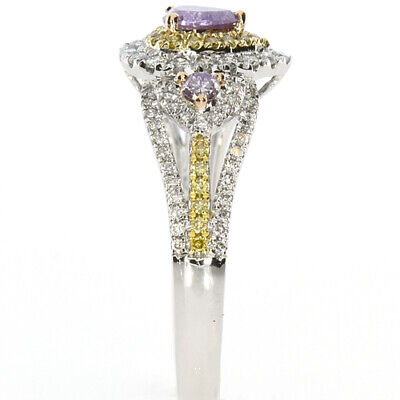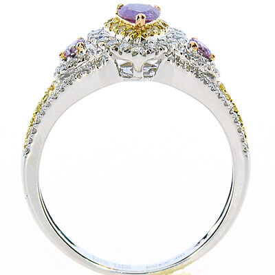 .58CT WHITE PINK & FANCY YELLOW DIAMOND 18KT TRI COLOR GOLD PEAR SHAPE HALO RING