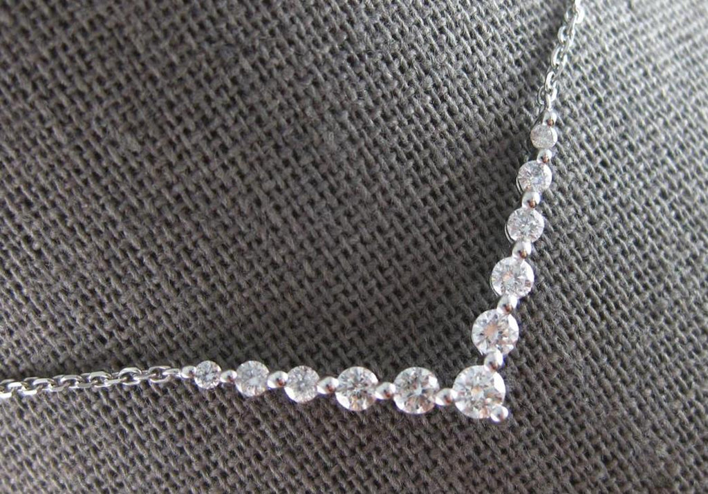 .59CT DIAMOND 14KT WHITE GOLD 3D GRADUATING V SHAPE SHARED PRONG LOVE NECKLACE