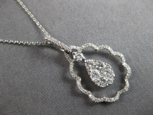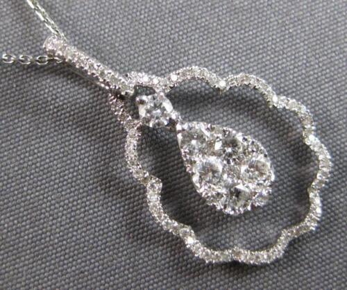 .59CT DIAMOND 18KT WHITE GOLD 3D ROUND CLUSTER FLORAL TEAR DROP FLOATING PENDANT