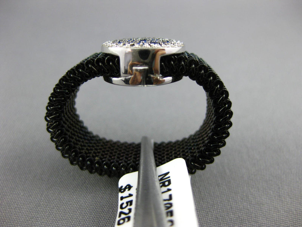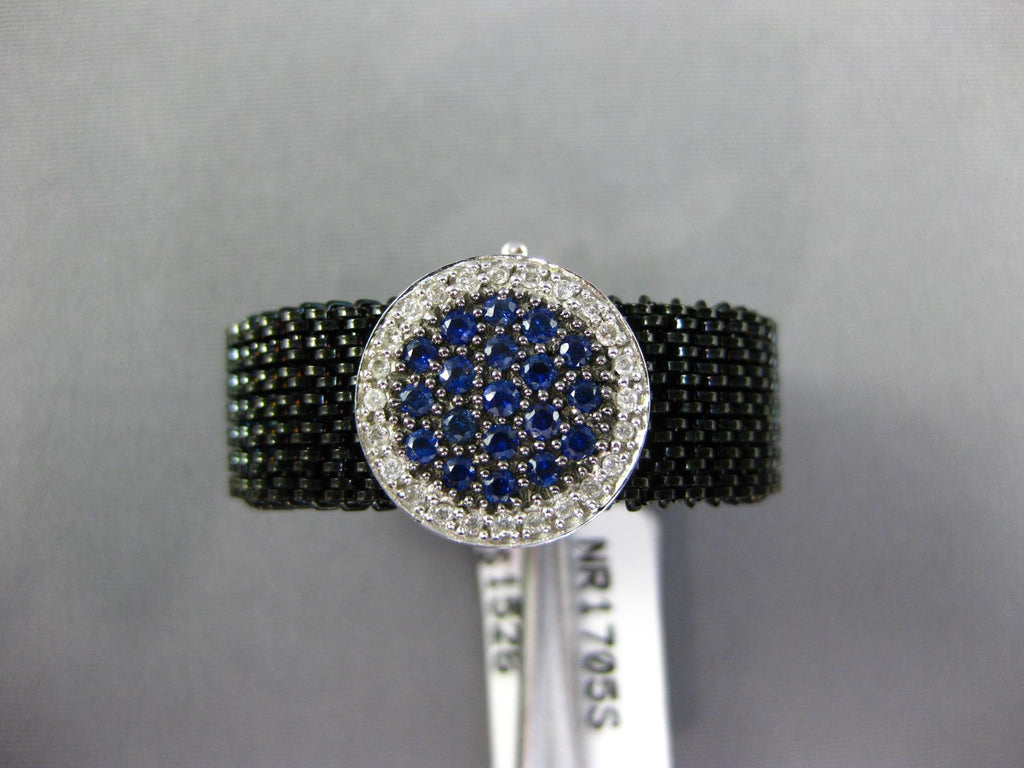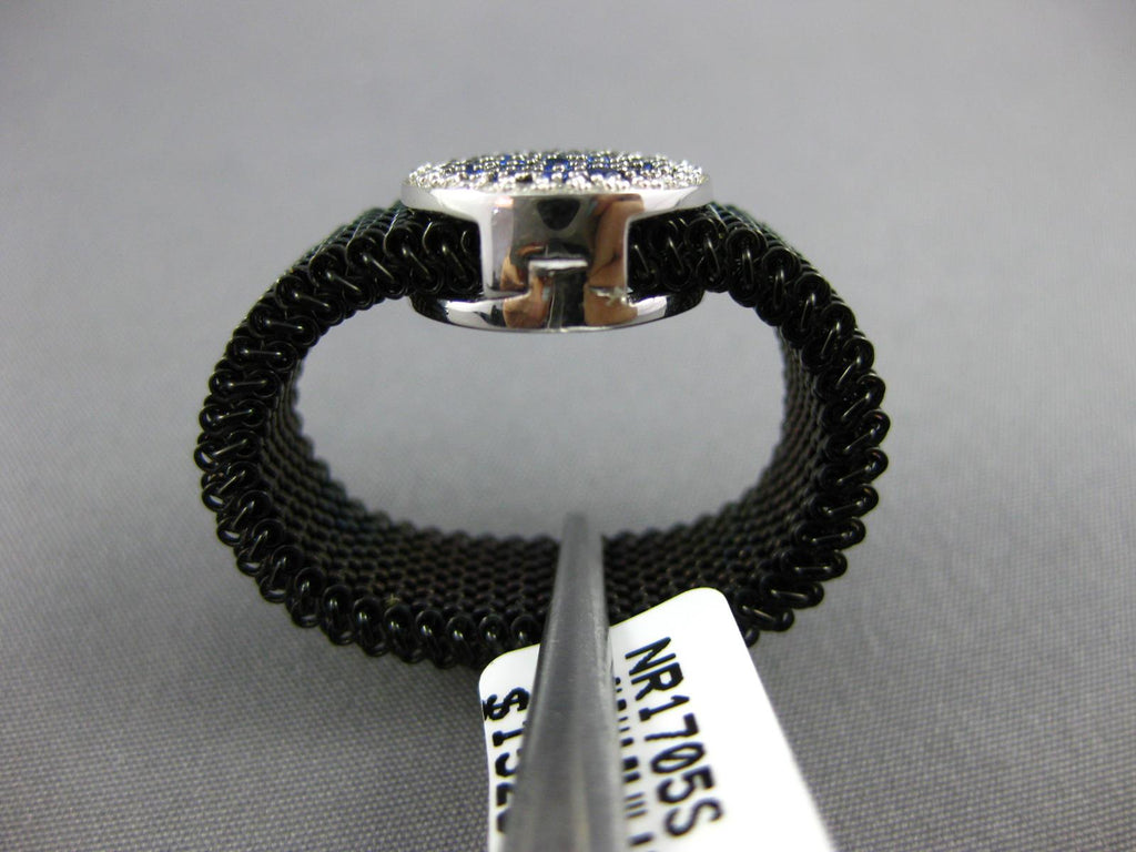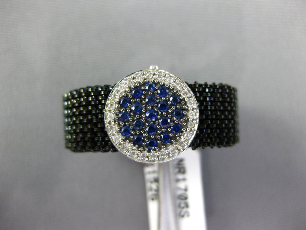 14KT BLACK GOLD FLEXIBLE RING PENDANT. 3D ROUND CLUSTER DESIGN. ROUND DIAMONDS ARE F/G COLOR, VSSI CLARITY .14 CARATS. AAA ROUND SAPPHIRES ARE .45 CARATS. MEASURES 13mm WIDE. RING SIZE 11.25. CAN BE SIZED BY OUR MASTER JEWELER UPON REQUEST. WRITTEN APPRAISAL AVAILABLE. COMES IN A PRESENTABLE GIFT BOX.
