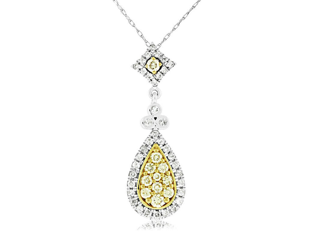 .59CT WHITE & FANCY YELLOW DIAMOND 14K WHITE GOLD SQUARE TEAR DROP PENDANT