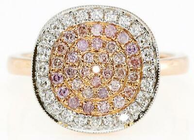 18KT ROSE GOLD FUN RING. 3D CLUSTER FILIGREE MILGRAIN SQUARE DESIGN. ROUND WHITE DIAMONDS ARE F/G COLOR, VSSI CLARITY .27 CARATS. ROUND PINK DIAMONDS ARE .32 CARATS. RING SIZE 7. CAN BE SIZED BY OUR MASTER JEWELER UPON REQUEST. WRITTEN APPRAISAL AVAILABLE. COMES IN A PRESENTABLE GIFT BOX.