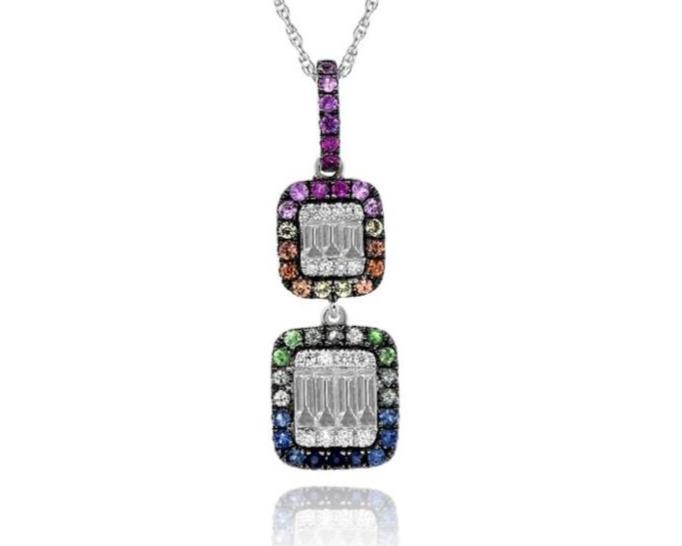 .65CT DIAMOND & MULTI COLOR SAPPHIRE 14K WHITE GOLD BAGUETTE SQUARE PENDANT