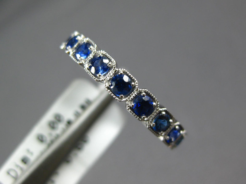 .60CT AAA SAPPHIRE 14K WHITE GOLD ROUND FILIGREE SEMI ETERNITY ANNIVERSARY RING