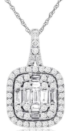 .60CT DIAMOND 14KT WHITE GOLD ROUND & BAGUETTE SQUARE CLUSTER FLOATING PENDANT