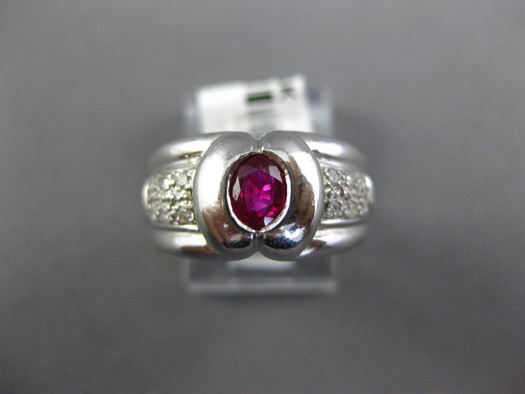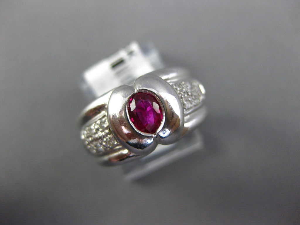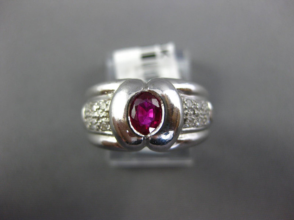 .60CT DIAMOND & AAA RUBY 18KT WHITE GOLD OVAL & ROUND BEZEL FRIENDSHIP LOVE RING