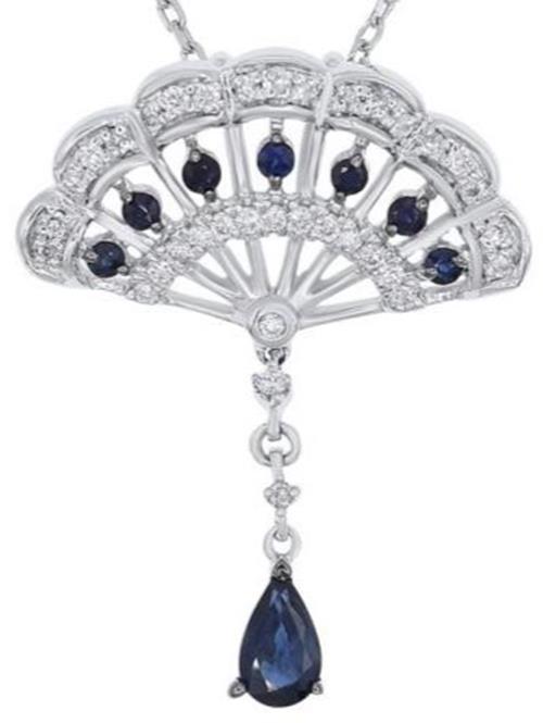 .60CT DIAMOND & AAA SAPPHIRE 14KT WHITE GOLD PEACOCK FLOWER TEAR DROP NECKLACE