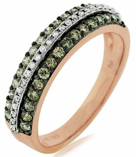 14KT WHITE AND ROSE GOLD WEDDING ANNIVERSARY RING. 3D THREE ROW CLASSIC SEMI ETERNITY DESIGN. WHITE DIAMONDS ARE F/G COLOR, VSSI CLARITY .10 CARATS. CHOCOLATE FANCY DIAMONDS ARE .50 CARATS. RING SIZE 7. CAN BE SIZED BY OUR MASTER JEWELER UPON REQUEST. WRITTEN APPRAISAL AVAILABLE. COMES IN A PRESENTABLE GIFT BOX.