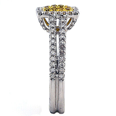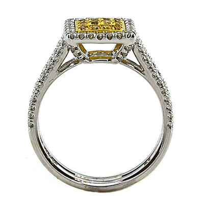 .60CT WHITE & FANCY YELLOW DIAMOND 18KT 2 TONE GOLD ROUND PAVE SQUARE FUN RING
