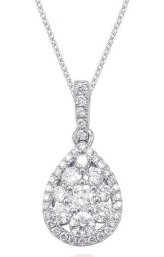 .61CT DIAMOND 14KT WHITE GOLD 3D CLASSIC CLUSTER TEAR DROP HALO FLOATING PENDANT