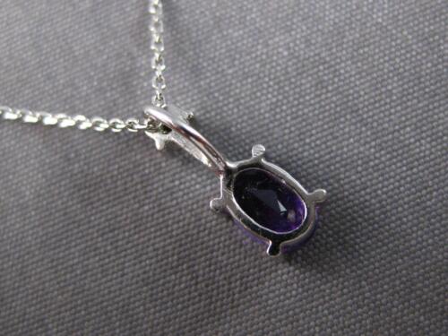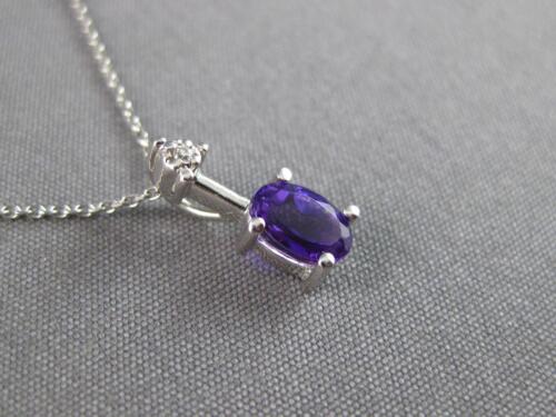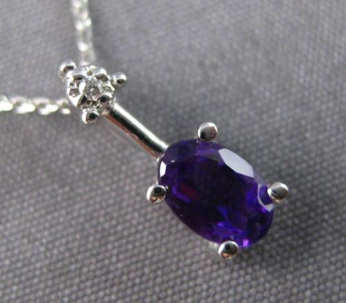 14KT WHITE GOLD FUN FLOATING PENDANT. 3D DESIGN. ROUND DIAMONDS ARE F/G COLOR, VSSI CLARITY .01 CARATS. AAA EXTRA FACETED OVAL AMETHYST IS .60 CARATS. MEASURES 12mm X 5mm. COMES ON A 14KT GOLD DIAMOND CUT 16" INCH CHAIN. WRITTEN APPRAISAL AVAILABLE. COMES IN A PRESENTABLE GIFT BOX.