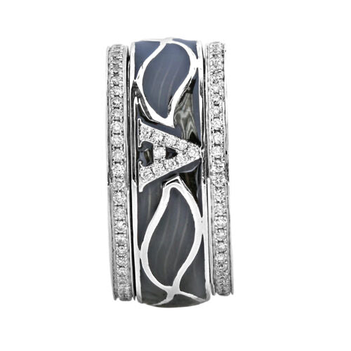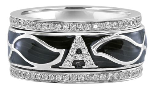 .61CT DIAMOND & BLACK ENAMEL 18KT WHITE GOLD A INITIAL WEDDING ANNIVERSARY RING