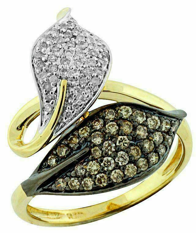 .61CT WHITE & CHOCOLATE FANCY DIAMOND 14KT YELLOW GOLD LEAF CRISS CROSS FUN RING