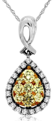 .61CT WHITE & FANCY YELLOW DIAMOND 14K 2 TONE GOLD 3D TEAR DROP FLOATING PENDANT