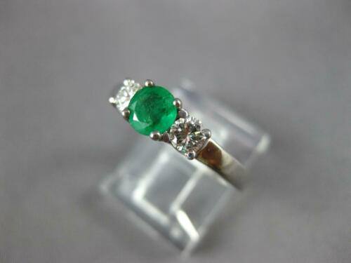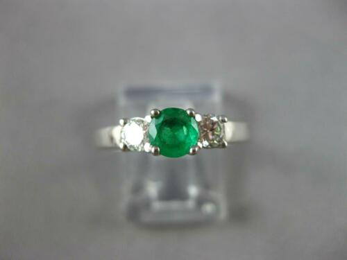 .62CT DIAMOND & AAA EMERALD 14KT WHITE GOLD ROUND 3 STONE ENGAGEMENT RING #27343