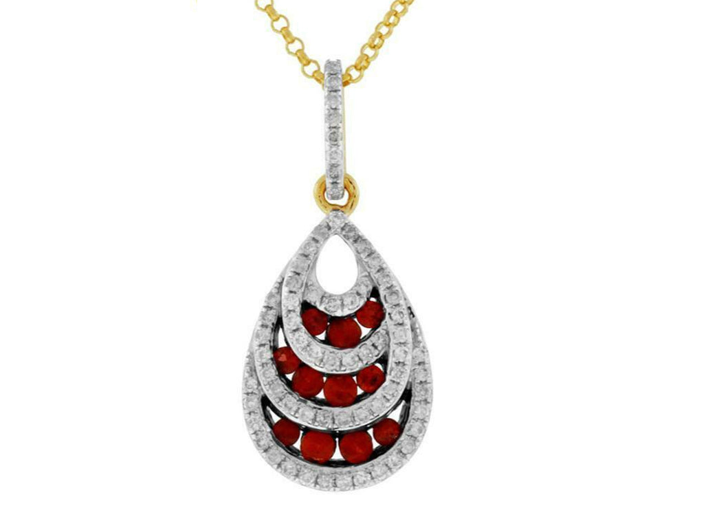 .63CT DIAMOND & AAA RUBY 14KT YELLOW GOLD MULTI ROW TEAR DROP FLOATING PENDANT