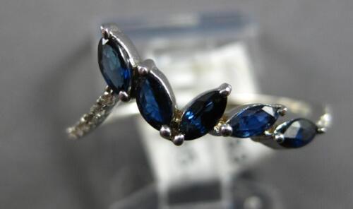 14KT WHITE GOLD FUN RING. 3D MULTI LEAF V SHAPE DESIGN. ROUND DIAMONDS ARE F/G COLOR, VSSI CLARITY .08 CARATS. AAA MARQUISE SHAPE SAPPHIRES ARE .55 CARATS. MEASURES 9mm WIDE. RING SIZE 7.75. CAN BE SIZED BY OUR MASTER JEWELER UPON REQUEST. WRITTEN APPRAISAL AVAILABLE. COMES IN A PRESENTABLE GIFT BOX.