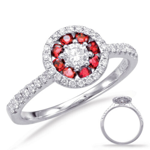 14KT WHITE GOLD LOVE RING. 3D FLOWER CIRCULAR DESIGN. ROUND DIAMONDS ARE F/G COLOR, VSSI CLARITY .38 CARATS. AAA RUBIES ARE .27 CARATS. MEASURES 9mm WIDE. RING SIZE 6. CAN BE SIZED BY OUR MASTER JEWELER UPON REQUEST. WRITTEN APPRAISAL AVAILABLE. COMES IN A PRESENTABLE GIFT BOX.