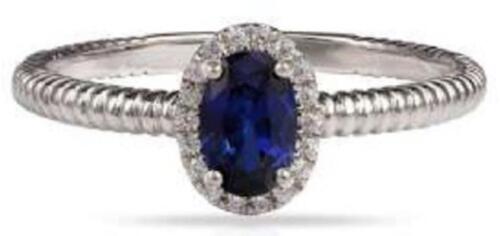 14KT WHITE GOLD FRIENDSHIP LOVE RING. 3D HALO DESIGN. ROUND DIAMONDS ARE F/G COLOR, VSSI CLARITY .07 CARATS. AAA OVAL SAPPHIRE IS .58 CARATS. RING SIZE 7. CAN BE SIZED BY OUR MASTER JEWELER UPON REQUEST. WRITTEN APPRAISAL AVAILABLE. COMES IN A PRESENTABLE GIFT BOX.