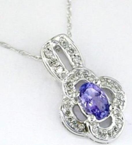 14KT WHITE GOLD FLOATING PENDANT. 3D FLOWER DESIGN. ROUND DIAMONDS ARE F/G COLOR, VSSI CLARITY .15 CARATS. AAA OVAL TANZANITE IS .50 CARATS. COMES ON A 14KT GOLD DIAMOND CUT 16" INCH CHAIN. WRITTEN APPRAISAL AVAILABLE. COMES IN A PRESENTABLE GIFT BOX.