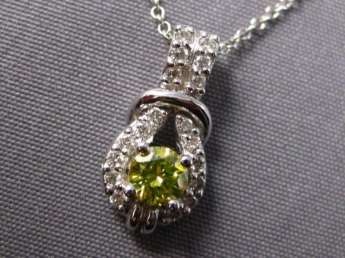 14KT WHITE GOLD FLOATING PENDANT. 3D TEAR DROP LOVE KNOT DESIGN. ROUND WHITE DIAMONDS ARE F/G COLOR, VSSI CLARITY .40 CARATS. FANCY YELLOW DIAMOND IS .25 CARATS. MEASURES 15.5mm X 8mm. COMES ON A 14KT GOLD DIAMOND CUT 16" INCH CHAIN. WRITTEN APPRAISAL AVAILABLE. COMES IN A PRESENTABLE GIFT BOX.