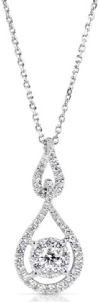 .66CT DIAMOND 14K WHITE GOLD 3D CLUSTER ROUND DOUBLE TEAR DROP LOVE KNOT PENDANT
