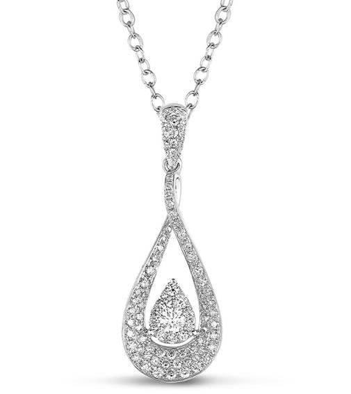 .66CT DIAMOND 14KT WHITE GOLD 3D SOLITAIRE INVISIBLE TEAR DROP INFINITY PENDANT