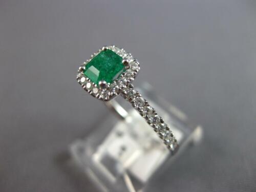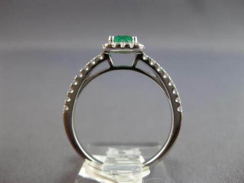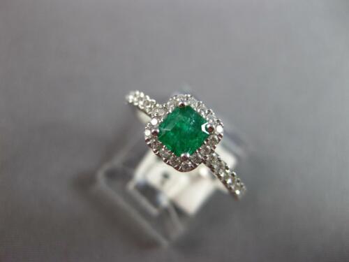 18KT WHITE GOLD FRIENDSHIP LOVE RING. 3D CLASSIC HALO DESIGN. ROUND DIAMONDS ARE F/G COLOR, VVS-VS CLARITY .29 CARATS. AAA SQUARE EMERALD IS .37 CARATS. EMERALD MEASURES 5mm X 4.5mm. RING MEASURES 7.5mm WIDE. RING SIZE 6.5. CAN BE SIZED BY OUR MASTER JEWELER UPON REQUEST. WRITTEN APPRAISAL AVAILABLE. COMES IN A PRESENTABLE GIFT BOX.