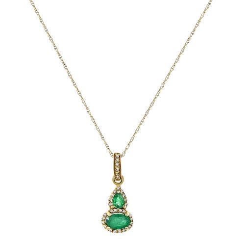 18KT YELLOWGOLD FUN FLOATINGPENDANT. 3D DESIGN. ROUND DIAMONDS ARE F/G COLOR, VSSI CLARITY .09 CARATS. AAA PEAR SHAPE & OVALEMERALDSARE.57 CARATS.COMES ON A 14KT GOLD DIAMOND CUT 16" INCH CHAIN.WRITTEN APPRAISAL AVAILABLE. COMES IN A PRESENTABLE GIFT BOX.