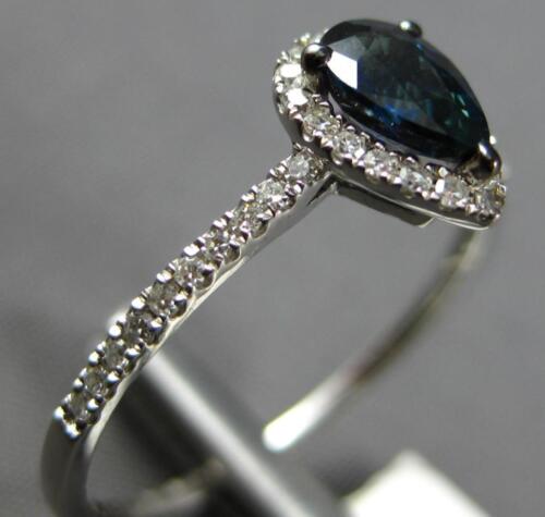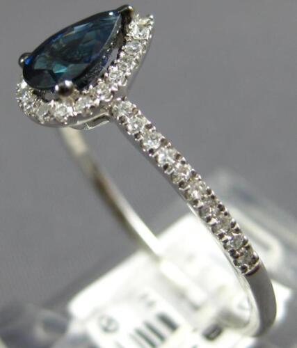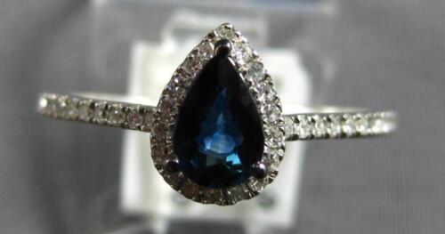 14KT WHITE GOLD FRIENDSHIP LOVE RING. 3D CLASSIC HALO DESIGN. ROUND DIAMONDS ARE F/G COLOR, VSSI CLARITY .15 CARATS. AAA PEAR SHAPE SAPPHIRE IS .51 CARATS. MEASURES 8.5mm WIDE. RING SIZE 7. CAN BE SIZED BY OUR MASTER JEWELER UPON REQUEST. WRITTEN APPRAISAL AVAILABLE. COMES IN A PRESENTABLE GIFT BOX.