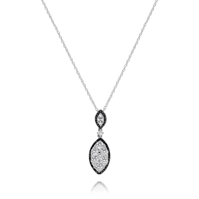 .66CT WHITE & BLACK DIAMOND 14KT WHITE GOLD MARQUISE SHAPE PAVE FLOATING PENDANT