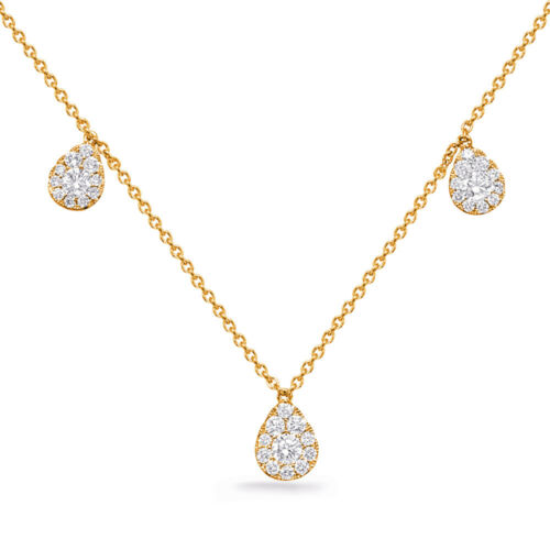 .67CT DIAMOND 14KT YELLOW GOLD 3D PAVE TEAR DROP BY THE YARD CHANDELIER NECKLACE