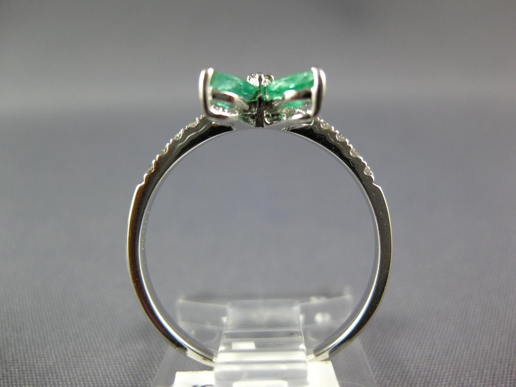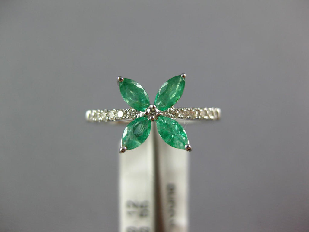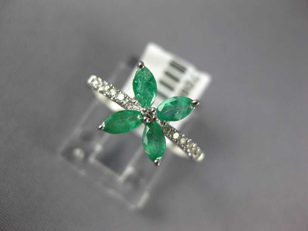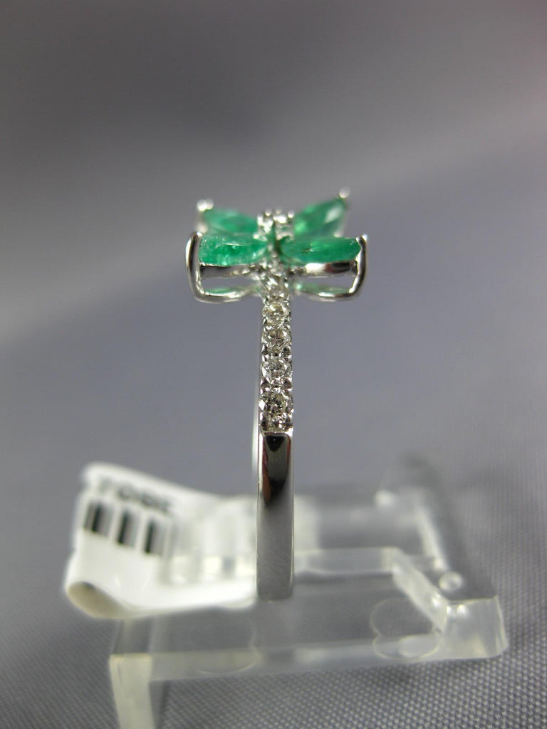 .67CT DIAMOND & AAA EMERALD 14K WHITE GOLD 3D MARQUISE 4 LEAF CLOVER FLOWER RING