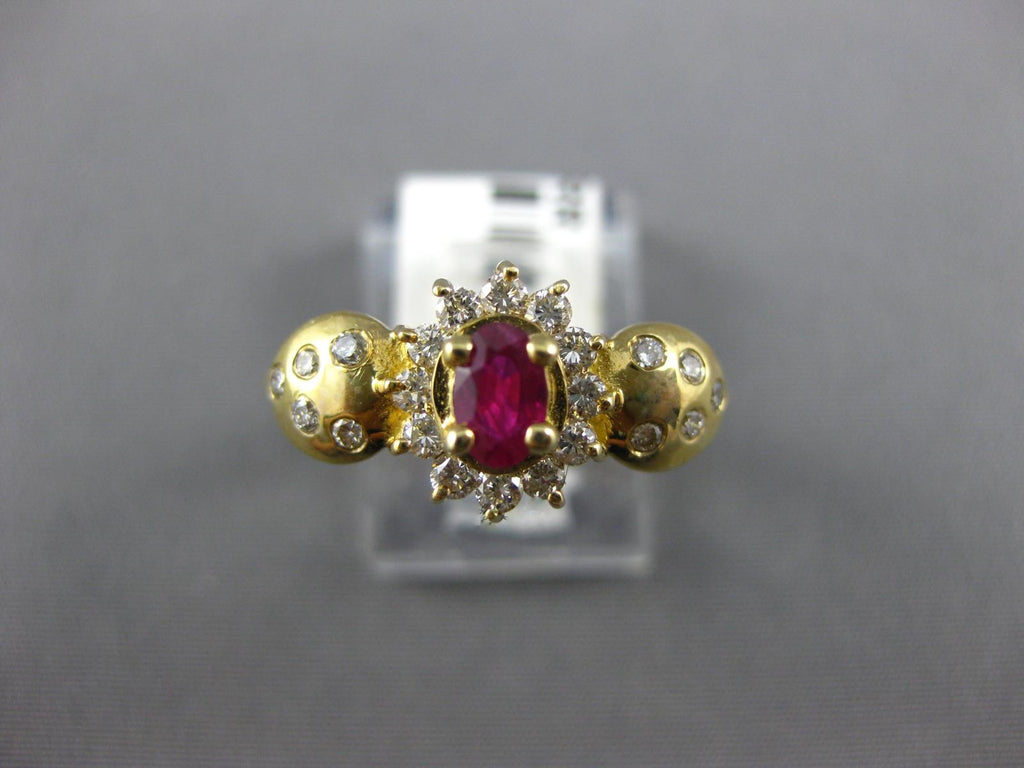 .67CT DIAMOND & AAA RUBY 14KT YELLOW GOLD 3D OVAL & ROUND FLOWER FRIENDSHIP RING