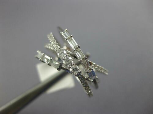 .68CT DIAMOND 14KT WHITE GOLD 3D ROUND & BAGUETTE MULTI ROW CRISS CROSS FUN RING