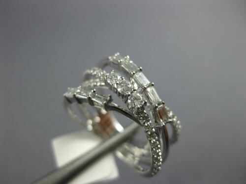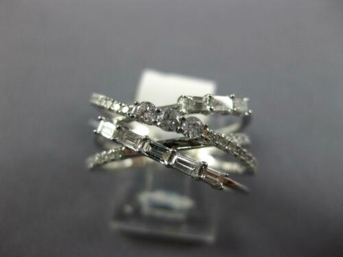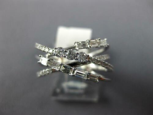 14KT WHITE GOLD FUN RING. 3D MULTI ROW CRISS CROSS DESIGN. ROUND AND BAGUETTE DIAMONDS ARE F/G COLOR, VSSI CLARITY .68 CARATS. MEASURES 10mm WIDE. RING SIZE 7. CAN BE SIZED BY OUR MASTER JEWELER UPON REQUEST. WRITTEN APPRAISAL AVAILABLE. COMES IN A PRESENTABLE GIFT BOX.