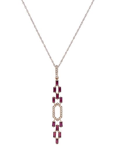 .68CT DIAMOND & AAA RUBY 14KT ROSE GOLD HEXAGON ELONGATED FUN FLOATING PENDANT